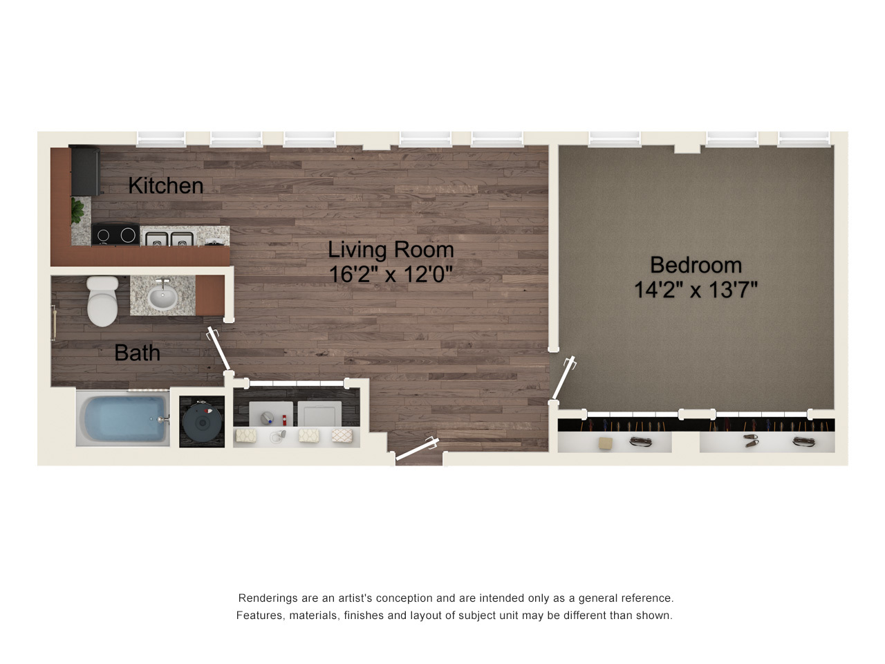 Each uniquely designed one and two bedroom floor plan features beautiful interior finishes like granite countertops, and wood-style flooring. Browse our unique redesigned historic apartments with arch windows, original stained glass windows, and courtyard views. Reserve your home today!